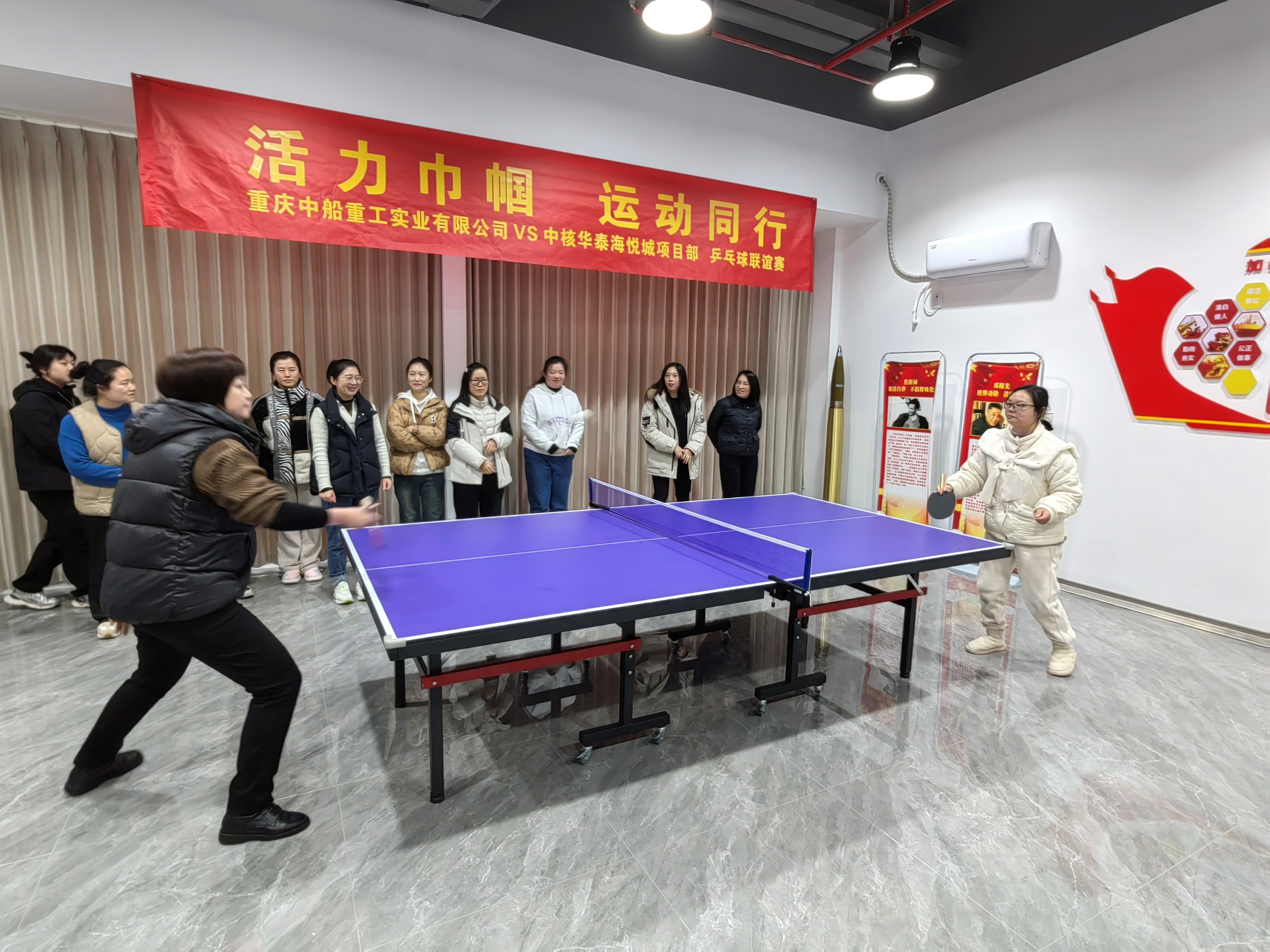 為迎接“三八”國際婦女節,展示女性職工健康向上、充滿活力的精神風貌,3月8日,實業公司萬州黨支部以“活力巾幗 運動同行”為主題,聯合中核華泰海悅城項目部一起舉辦了女職工乒乓球聯誼賽。